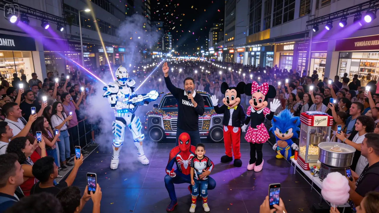 Robôs de LED, Personagens Vivos e Estações de Lanches.